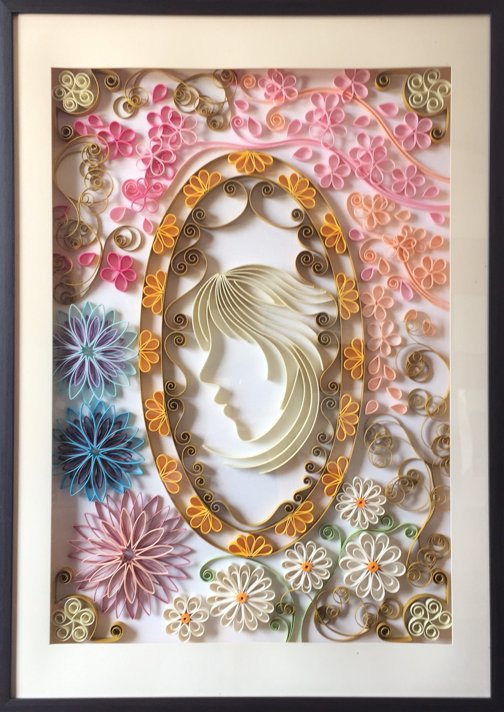 華恋想(華と恋と想い) かみばんどアート紙バンドを素材に生み出される、かみばんどアートの作品集です。私が描く文様を立体として紡ぎ出し、工芸と芸術が交差する表現を形にしました。その静謐な世界をご覧いただければ幸いです。 2025.09.032025.12.04 作品名/華恋想(華と恋と想い)2016年制作第68回宮日総合美術展入選サイズ/87cm×63cm かみばんどアート作品№08 〈作品紹介〉 「華」「恋」「想い」この三つの言葉をテーマに、紙バンドで繊細に描いたアート作品です。華は、咲き誇る美しさと儚さ。恋は、心を揺らすときめきと切なさ。想いは、言葉にならない深い感情。紙バンドの柔らかな質感と流れるようなデザインで、それぞれの情景を表現しました。華やかさの中に秘めた想いと恋。そのすべてが重なり合い、一つの形となっています。フレームの中に、たくさんの花の文様を詰め込んだ大作です。