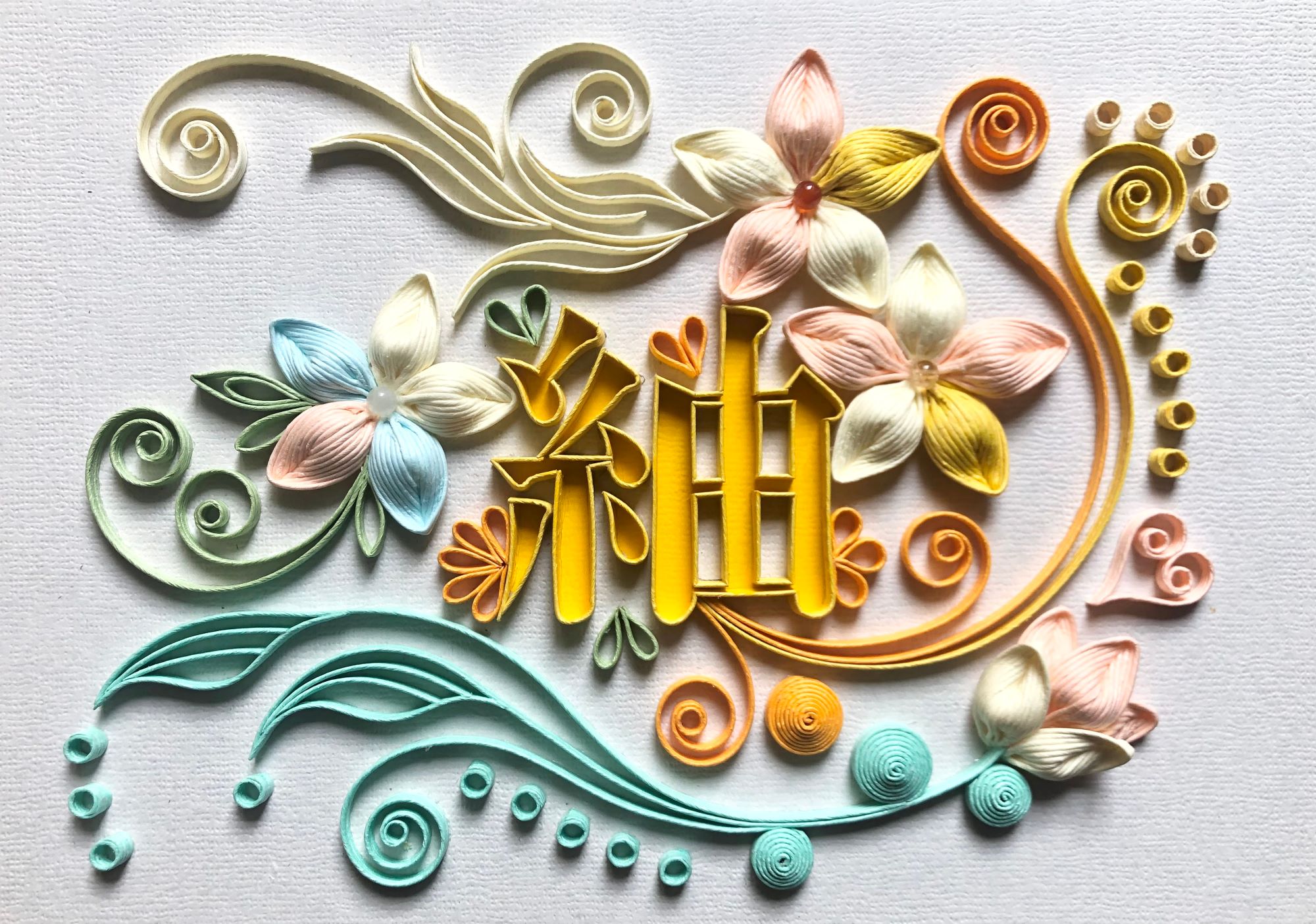 紬 かみばんどアート紙バンドを素材に生み出される、かみばんどアートの作品集です。私が描く文様を立体として紡ぎ出し、工芸と芸術が交差する表現を形にしました。その静謐な世界をご覧いただければ幸いです。 2025.09.032025.12.04 作品名/紬2022年制作サイズ/不明 かみばんどアート作品№27 〈作品紹介〉 「紬」という文字を、柔らかな黄色の紙バンドで丁寧に描いたアート作品です。全体にはパステル調の黄色系カラーを用い、やさしくあたたかな雰囲気を演出。文字のまわりには、花や渦巻、小さな円が曲線を描くように配置され、軽やかな動きと調和を感じさせます。「紬」が持つ糸のような繋がりやぬくもりを、紙バンドの質感と色合いで表現した、心に寄り添うような作品です。春の日差しのような、穏やかな輝きをお楽しみください。