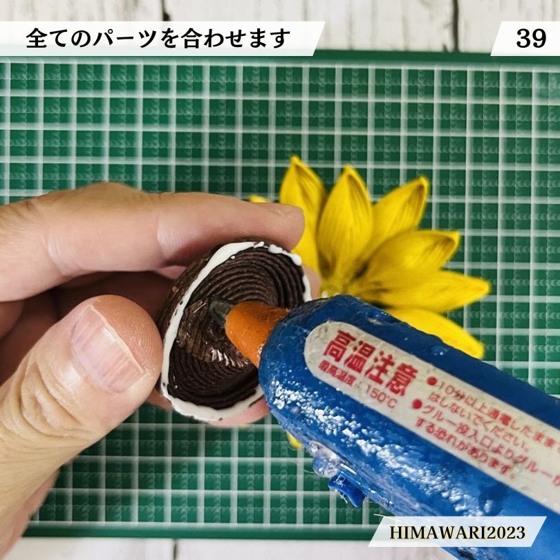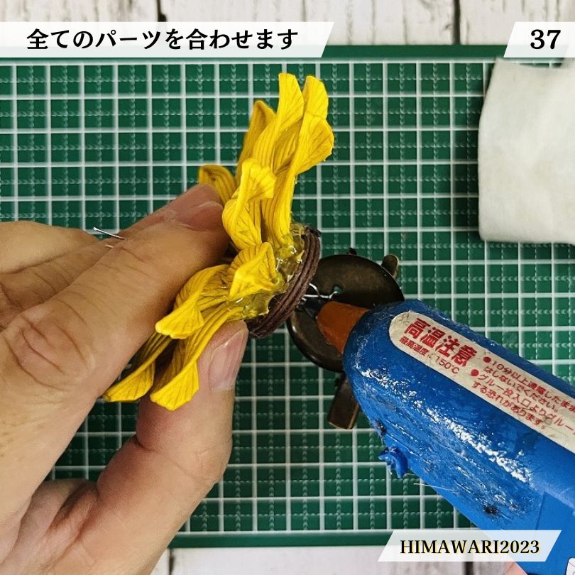 ・花びらの真ん中にもホットボンドを少しつけます