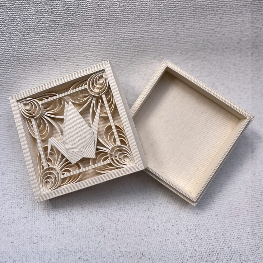 私は、この小箱をつくるとき、単に物を収める器を超えて、心を静め、想いを託せる場を形にしたいと願っています。日々の暮らしの中で、大切なものを包み、そっと寄り添う存在となるように。